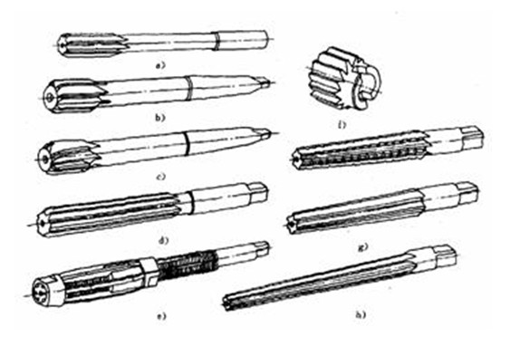 a) 直柄机用铰刀 b) 锥柄机用铰刀 c) 硬质合金锥柄机用铰刀 d) 手用铰刀